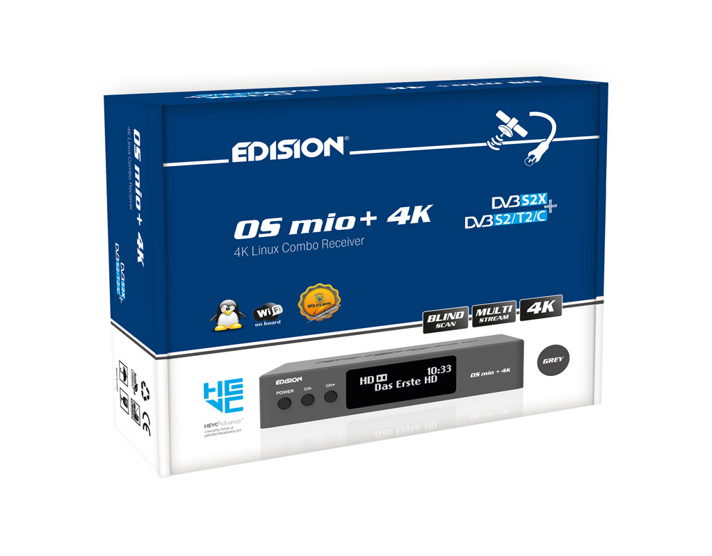 is the new E2 LINUX 4Κ UHD, DVB-S2X + S2/T2/C combo receiver in the E2 LINUX range of EDISION receivers. It features 4K UHD resolution and has Multi Stream T2MI Tuner & Blinds can.